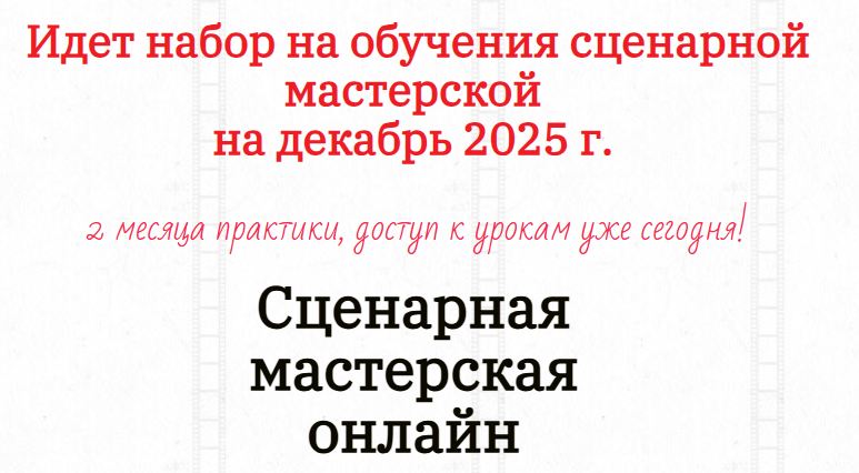 Сценарная мастерская помогает развитию вашего замысла от сценария до фильма. Вы на практике узнаете, как сделать много маленьких шагов к далекой цели, чтобы не сбиться и донести идею с максимальным развитием драматического конфликта.